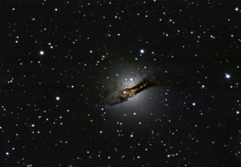 Name: Centaurus A / NGC5128 is a lenticular galaxy about 15 million light-years away in the constellation Centaurus. It is one of the closest radio galaxies to Earth. The galaxy is also the fifth brightest in the sky, making it an ideal amateur astronomy target, although the galaxy is only visible from low northern latitudes and the southern hemisphere. A relativistic jet which extracts energy from the vicinity of what is believed to be a supermassive black hole at the center of the galaxy is responsible for emissions in the X-ray and radio wavelengths. By taking radio observations of the jet separated by a decade, astronomers have determined that the inner parts of the jet are moving at about one half of the speed of light. X-rays are produced farther out as the jet collides with surrounding gases resulting in the creation of highly energetic particles. As observed in other starburst galaxies, a collision is responsible for the intense burst of star formation. Using the Spitzer Space Telescope scientists confirm that Centaurus A is going through a galaxy collision by devouring a spiral galaxy.