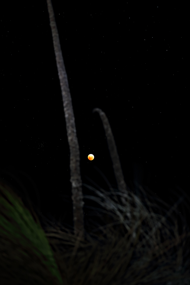 The red colour is a result of the light that manages to reach the moon travelling through the earths atmosphere which cause the blue's in the light to scatter leaving the reaming red colours to reach the moon to get it's red colour.  The red's may have been enhanced on this occasion by the presents of volcanic ash particles in the upper atmoshere.  Exposure times varied from 1/500 of a second with the moon in full sunlight to 30 seconds in the shadow of the earth.  The 30 second exposure's resulted in stars being present in the background images of the moon, something that would not normally occur due to the large difference in brilence between the moon and the stars under normal conditions.