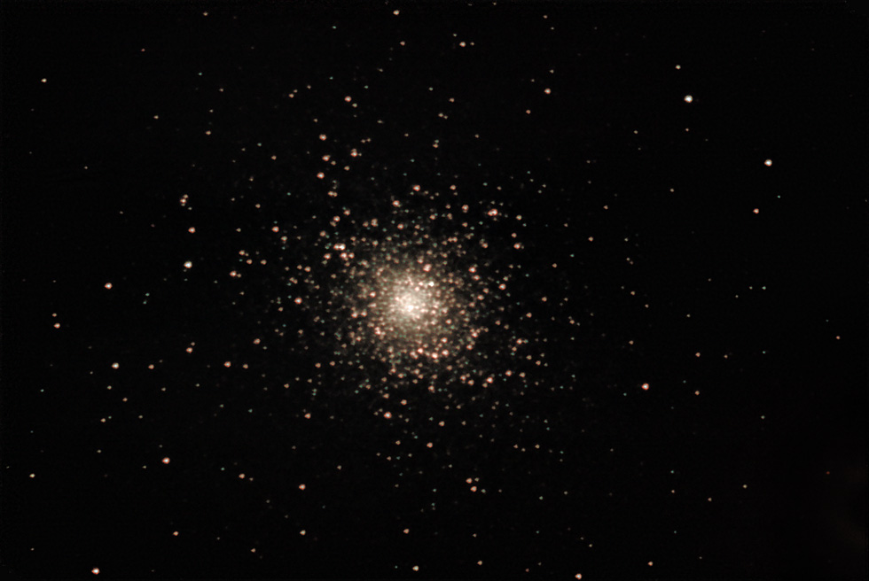 Name: M5 ( Globular Star Cluster ) I only took a few images of M5 as I slew past it to image M17, looks like I need to revisit this target another night. M5 comprises about 800,000 solar masses. It has a physical size of 150 light years. The age of the globular cluster is regarded as a lower limit to the age of the Universe. Earlier determinations were in conflict with temporary cosmological models. New cosmological models, based evidence for an accelerated expansion of the Universe, now suggest an older cosmos. At the same time, recent distance measurements of globular clusters, using the Hipparcos satellite, suggest larger distances, which result in younger cluster ages. M5 is one of the youngest objects of its kind in the Milky Way. |