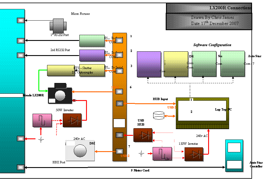 This diagram gives a simplified overview of the connections between all the hardware and the mapping of laptop resources to hardware.